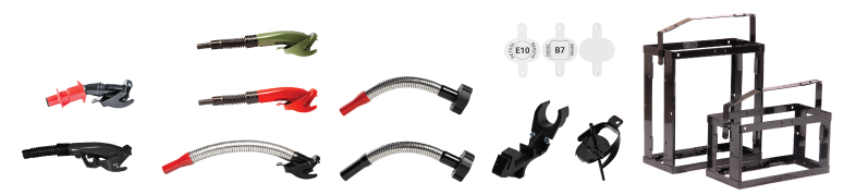 Um eine bessere, sicherere und funktionalere Nutzung zu gewährleisten, ist eine breite Palette an Zubehör erhältlich – Ausgießer, Kraftstoffkennzeichnungsetiketten, Kanister-Halterungen und andere praktische Lösungen, die den täglichen Gebrauch von Metallkraftstoffkanistern noch komfortabler machen.