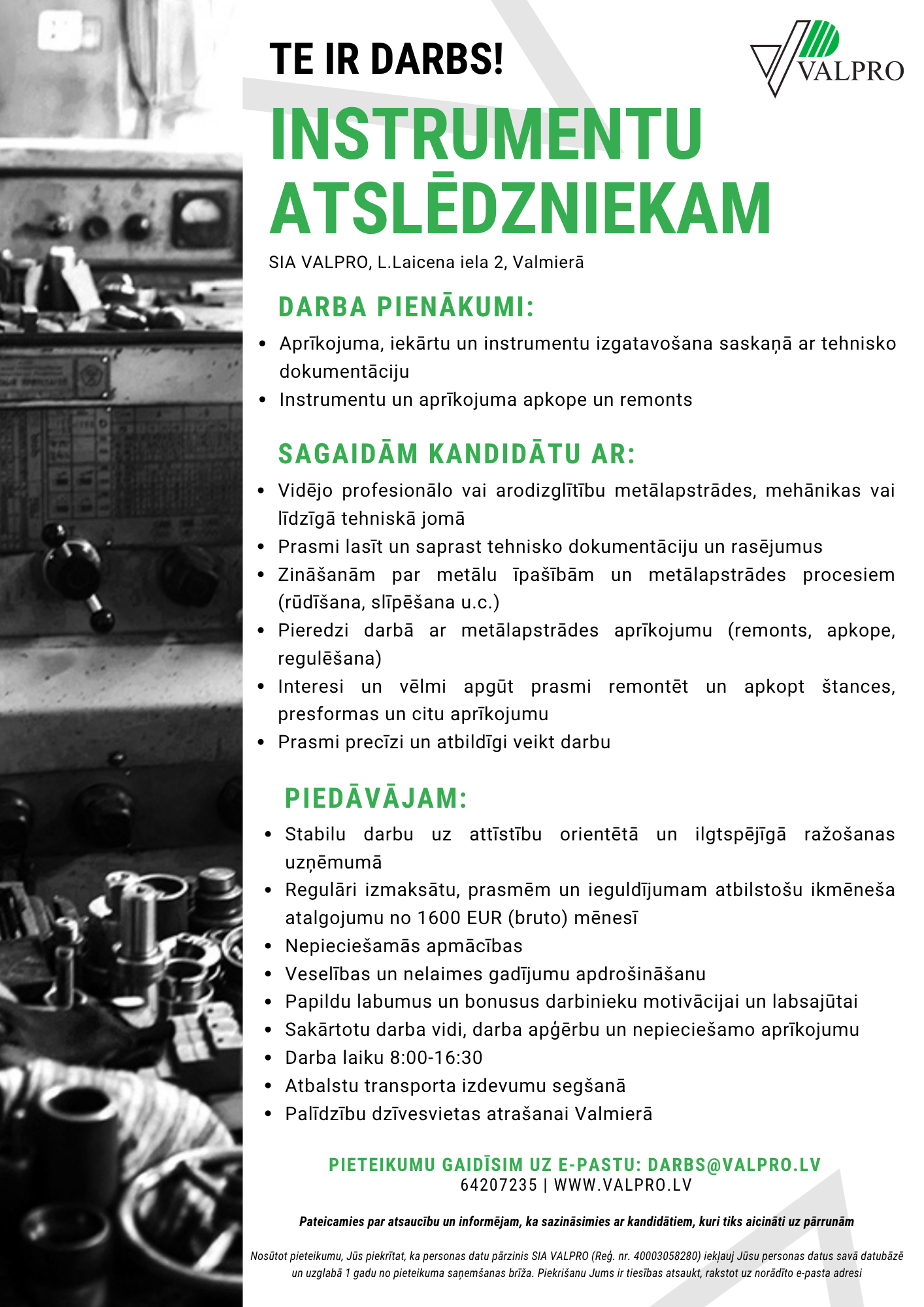 Viens no lielākajiem metālapstrādes uzņēmumiem Latvijā aicina savā komandā Instrumentu atslēdznieku