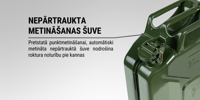Metāla kannu pamata krāsa ir zaļa (RAL 6003), sarkana (RAL 3000) un melna (RAL 9005).