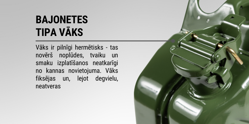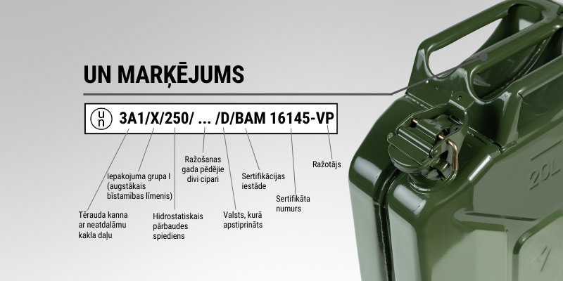 Tilpums: 20L Svars: 4.3kg Izmērs: 468x165x345 mm UN Nr. 3A1/X/250/../D/BAM 12276-VP